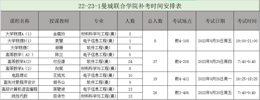 2022-2023学年第一学期补考报名工作已结束,根据学生补考报名情况,现将有关补考工作通知安排如下:
