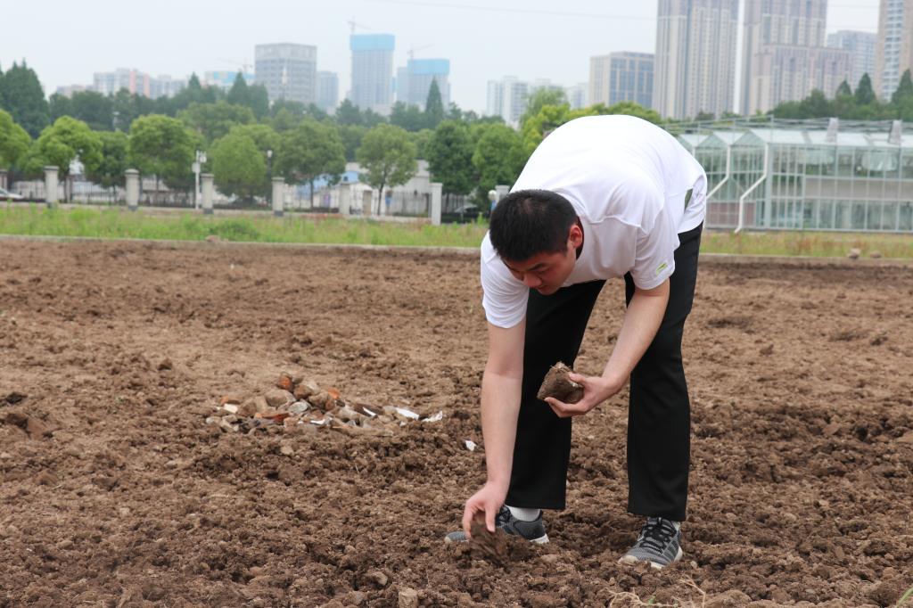 肩扛锄头、手攥杂草和碎石……5月12日,伟德国际1946源于英国开展了劳动实践教育,材料科学与工程专业2021级的同学们走进劳动实践基地——中国农业科学院油料作物研究所,体验了一次别样的劳动教育。